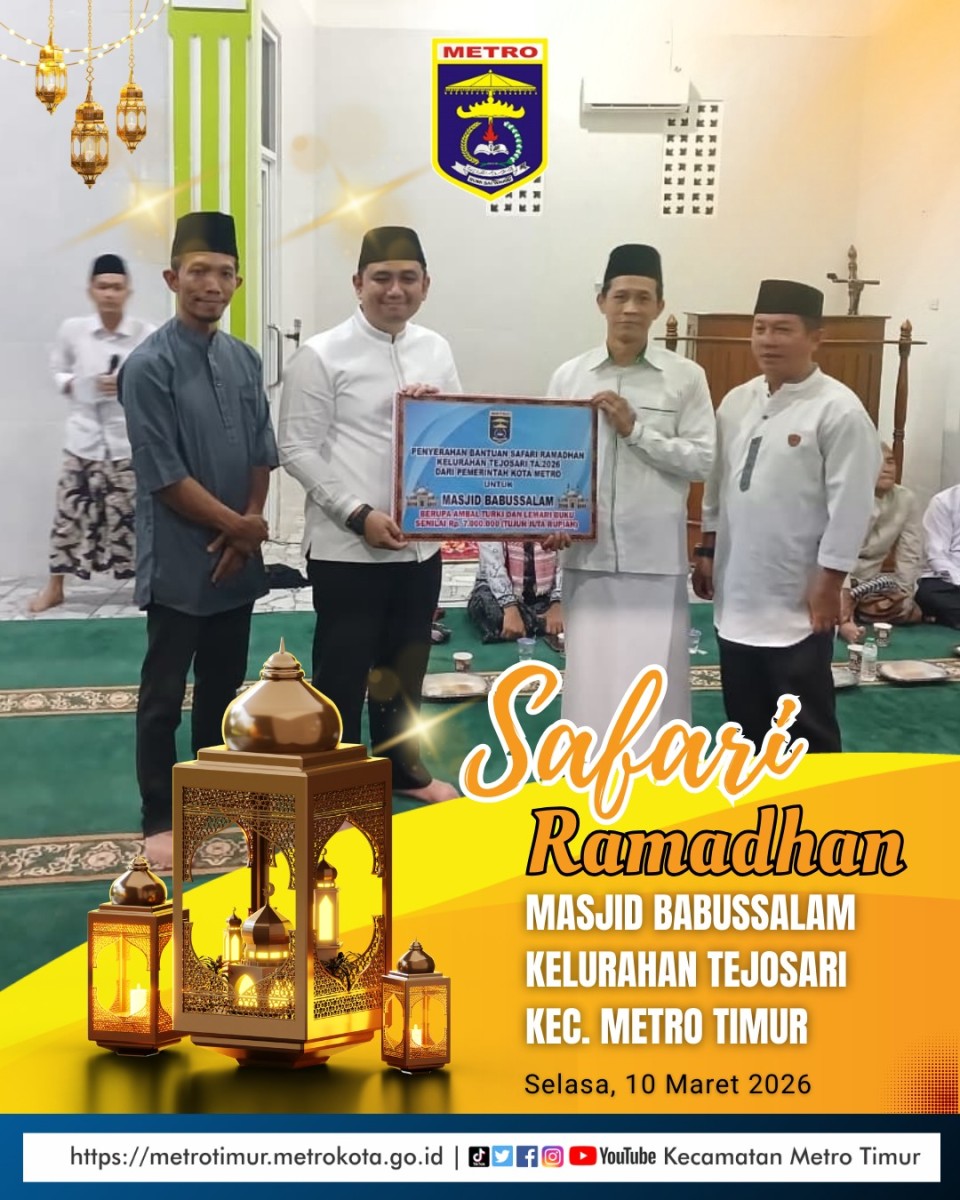 Metro Timur, 10 Maret 2026 – Tim II Safari Ramadhan Pemerintah Kota Metro melakukan kunjungan ke Masjid Babussalam, Kelurahan Tejosari, Kecamatan Metro Timur, dalam rangka mempererat silaturahmi dengan masyarakat serta