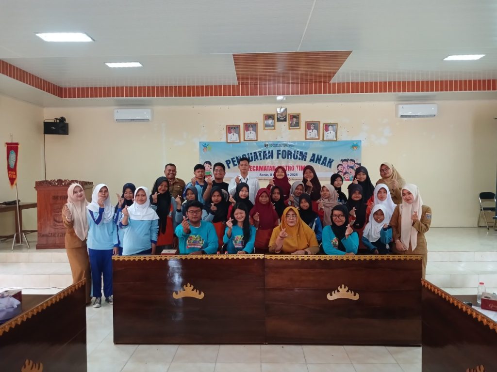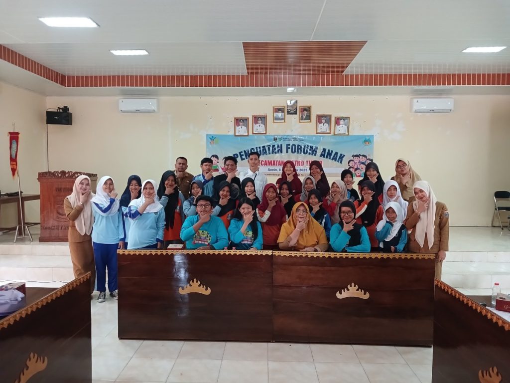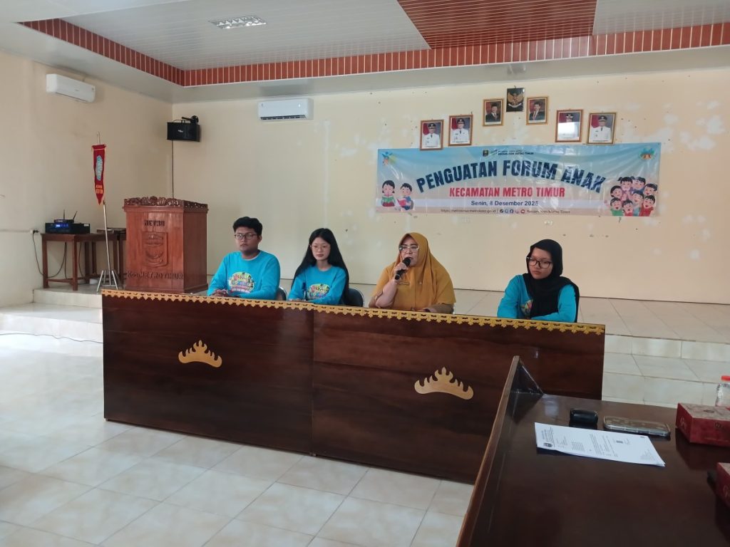 Metro Timur — Senin, 8 Desember 2025. Aula Kecamatan Metro Timur dipenuhi energi positif ketika Kasi Kesra Kecamatan Metro Timur membuka secara resmi kegiatan Forum Anak Kecamatan. Momentum ini menghadirkan seluruh perwakilan Forum Anak dari kecamatan dan kelurahan se-Metro Timur yang berkumpul untuk memperkuat jejaring, kreativitas, dan peran aktif mereka dalam pembangunan daerah.