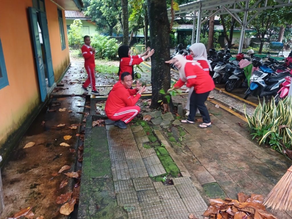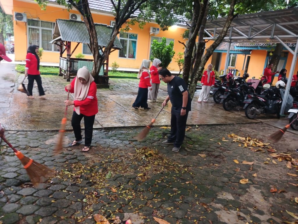 Dengan mengenakan pakaian olahraga, para pegawai tidak hanya melakukan aktivitas fisik, tetapi juga turun langsung membersihkan lingkungan kantor. Sejak pagi, halaman dan area kerja tampak lebih hidup dengan semangat gotong royong yang terbangun secara alami.