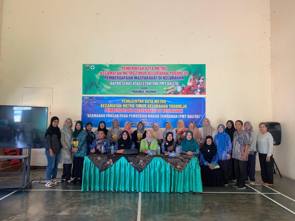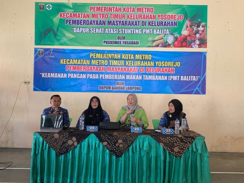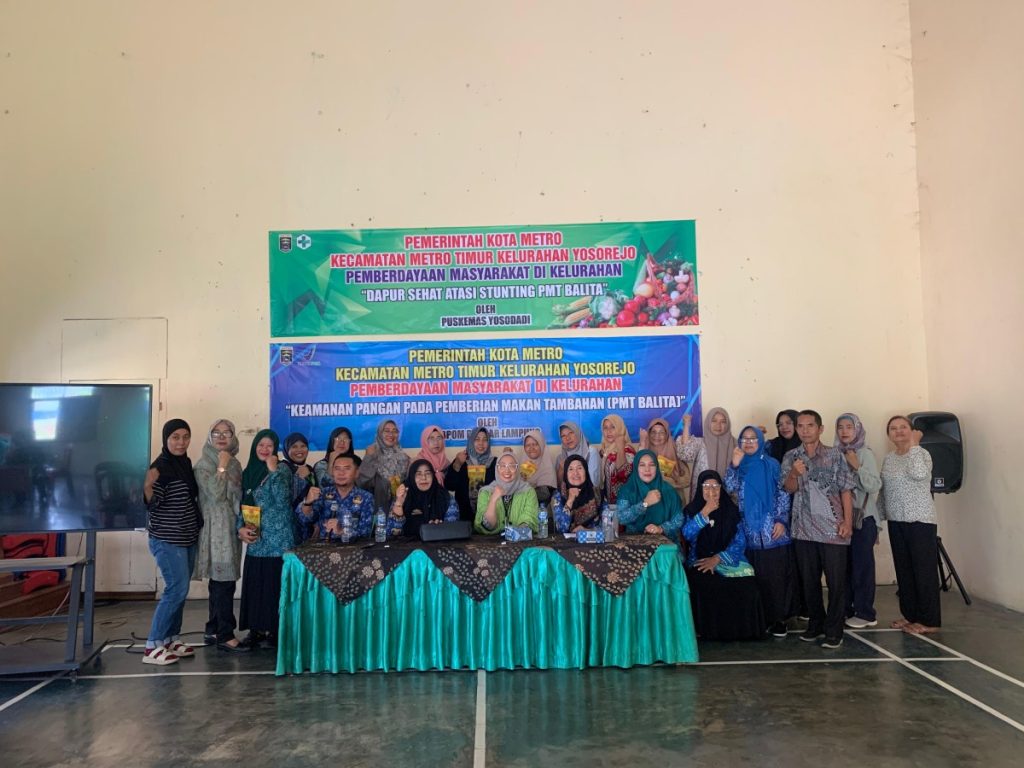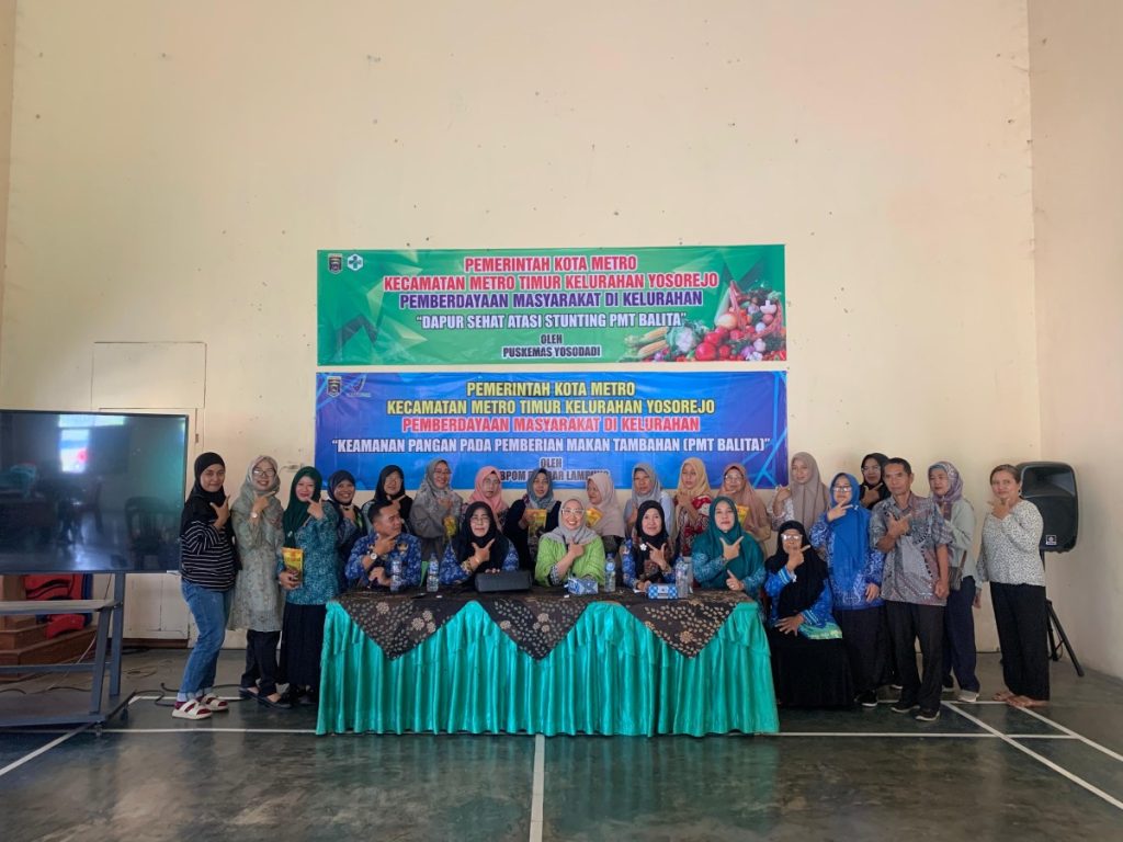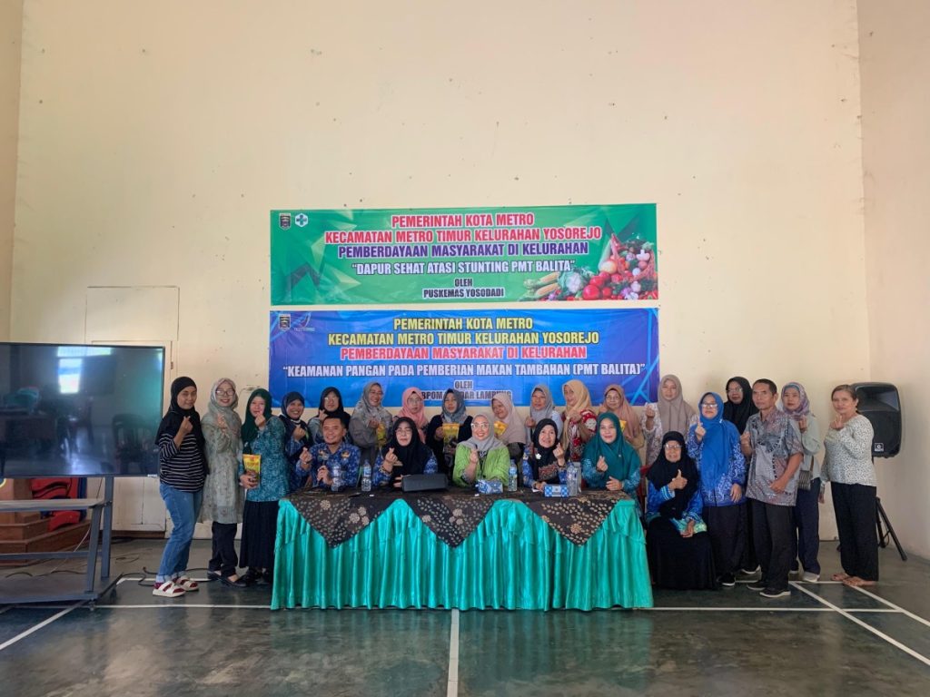 Metro Timur, Kamis 17 Juli 2025 — Dalam rangka mendukung percepatan penurunan angka stunting di wilayah Kecamatan Metro Timur, digelar kegiatan bertajuk “Keamanan Pangan dan Dapur Sehat Atasi Stunting” yang dilaksanakan di Aula Kelurahan Yosorejo. Kegiatan ini menjadi momentum kolaboratif antara pemerintah daerah, lembaga pengawasan pangan, serta kader pemberdayaan masyarakat dalam membangun kesadaran akan pentingnya pola konsumsi sehat dan aman.