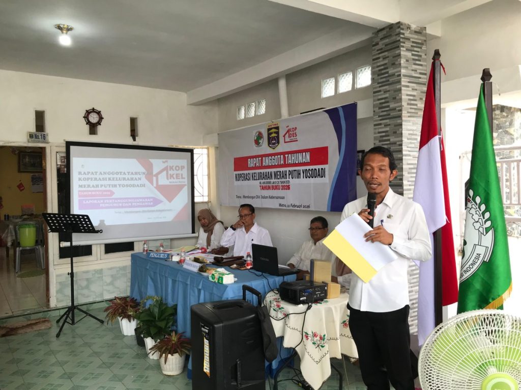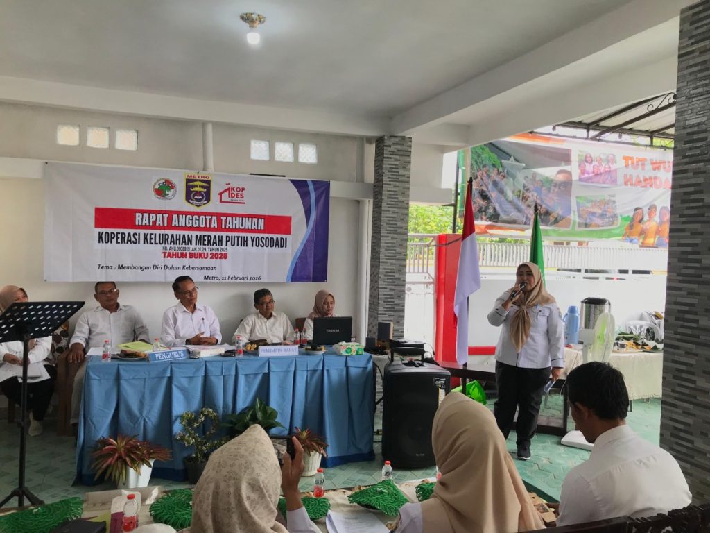 Metro Timur, 11 Februari 2026 — Koperasi Kelurahan Merah Putih (KKMP) Yosodadi kembali menegaskan komitmennya sebagai penggerak ekonomi kerakyatan melalui pelaksanaan Rapat Anggota Tahunan (RAT) Tahun Buku 2025, Rabu (11/2). Mengusung tema “Membangun Diri dalam Kebersamaan,” kegiatan ini tidak sekadar menjadi agenda rutin, tetapi momentum refleksi, evaluasi, sekaligus akselerasi pengembangan koperasi ke depan.