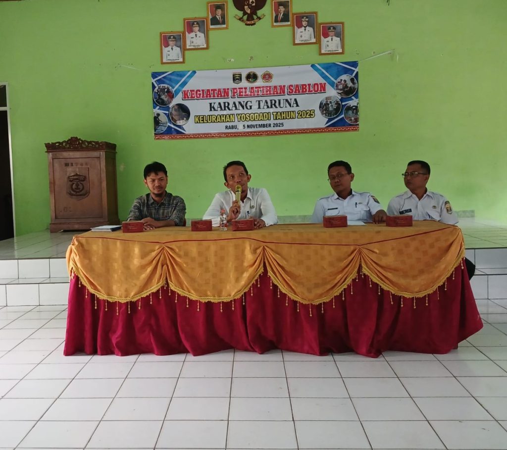Metro Timur, 5 November 2025 — Aula Kelurahan Yosodadi hari ini dipenuhi semangat dan kreativitas pemuda. Karang Taruna Kelurahan Yosodadi sukses menyelenggarakan Pelatihan Sablon Kreatif, sebuah kegiatan yang dirancang untuk menumbuhkan jiwa kewirausahaan di kalangan generasi muda.