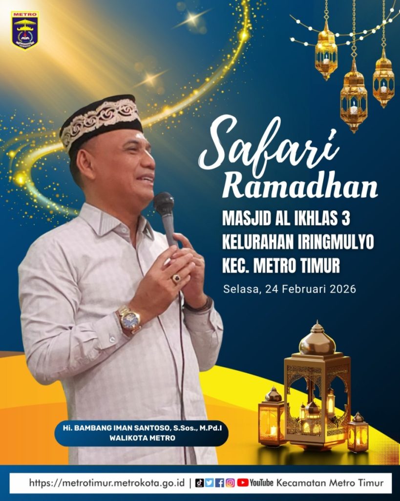 Metro Timur, 24 Februari 2026 – Semangat kebersamaan dan nilai-nilai keagamaan terasa hangat dalam kegiatan Safari Ramadhan Pemerintah Kota Metro yang dilaksanakan di Masjid Al Ikhlas 3, Kelurahan Iringmulyo. Kegiatan ini menjadi momentum silaturahmi sekaligus wujud nyata kehadiran pemerintah di tengah masyarakat.