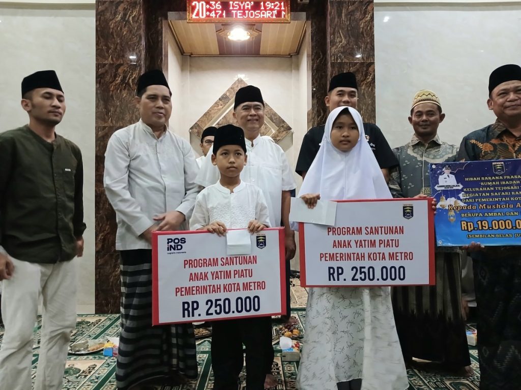 Dalam kesempatan tersebut, Setda Kota Metro menyerahkan secara simbolis bantuan sarana rumah ibadah berupa material bangunan senilai Rp19 juta. Selain itu, bantuan bagi anak yatim juga diberikan secara simbolis melalui Kantor Pos.